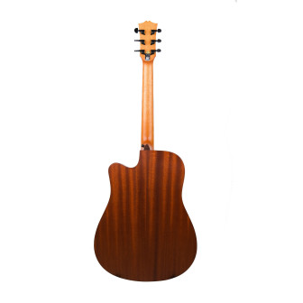 The Hex Sting Series F320M boasts an A Grade Solid African Sapele top, meticulously chosen for its resonant properties and ability to deliver a rich, full-bodied sound. Coupled with the A Grade African Sapele back and sides, this guitar delivers a harmonious blend of warmth and clarity, ensuring each note resonates with an enchanting purity.
