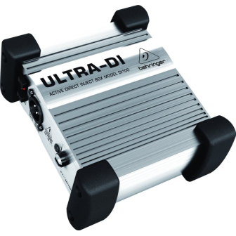 The Behringer Ultra-DI DI100 Battery/Phantom Powered DI Box is a road warrior. Studio warrior, too. Onstage and in the studio, the DI100 handles the all-important task of converting your unbalanced guitar, bass, and keyboard sources into the noise-free balanced signals your console wants to see. Thanks to the DI100's pad, you can even connect it to the output of your guitar amp! Of course, you get a groundlift, and the internal battery shuts down when phantom power is applied. Great sound - in a road-tough aluminum case with stackable rubber corners - that's Behringer's Ultra-DI DI100.
