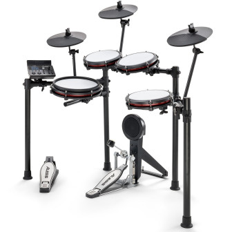 ₹39,917 -15% Off ₹33,929 In StockThe Alesis Turbo Mesh Kit is a complete 7-piece electronic drum kit centered around next-generation Alesis mesh head drum technology. Mesh heads are the overwhelming preference of drummers when they play electronic kits because of their natural feel and ultra-quiet response. The Alesis Turbo Mesh Kit features an 8" mesh snare drum and (3) 8" mesh toms. It includes everything else you need to make a complete drum kit; (3) 10" cymbals, custom-designed Alesis hi-hat and kick pedals, and a durable steel rack. We also include all the cabling, drum sticks, power supply and a drum key for easy setup,
