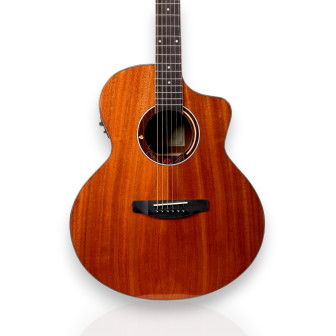 This instrument was designed to be a versatile piece of equipment that produces an incredibly smooth, rich, warm sound. It’s equipped with a Grade A Agathis top and Grade A African Sapele back and sides, producing an unbeatable combination of beauty and sound. The Nato neck is sturdy yet comfortable for hours of playing, while its Torrified Merbau fingerboard offers superior playability. To optimize string tension and stability this guitar features a Double Action Truss Rod plus Chrome Die-Cast Tuning Machines offering consistent tuning accuracy.