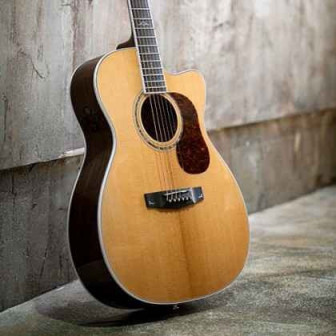 This guitar features a solid Sitka spruce top with mahogany back and sides, giving it an incredible sound projection with great tonal balance across a range of frequencies. The neck is crafted from African mahogany, producing a smooth feel under your fingers as you move up and down the fretboard. This model also features a tortoiseshell pickguard, creating a striking visual effect that looks as impressive as it sounds! The OC8 includes Fishman electronics for amplified recording or performance capabilities.