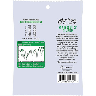 At Martin, we have been shaping the sound of music for over a century, and our mastery is evident in every strand of the MA170S. Our Authentic Acoustic Marquis Silked strings embody innovation and durability, providing an unrivaled playing experience that will elevate your performance to new heights.