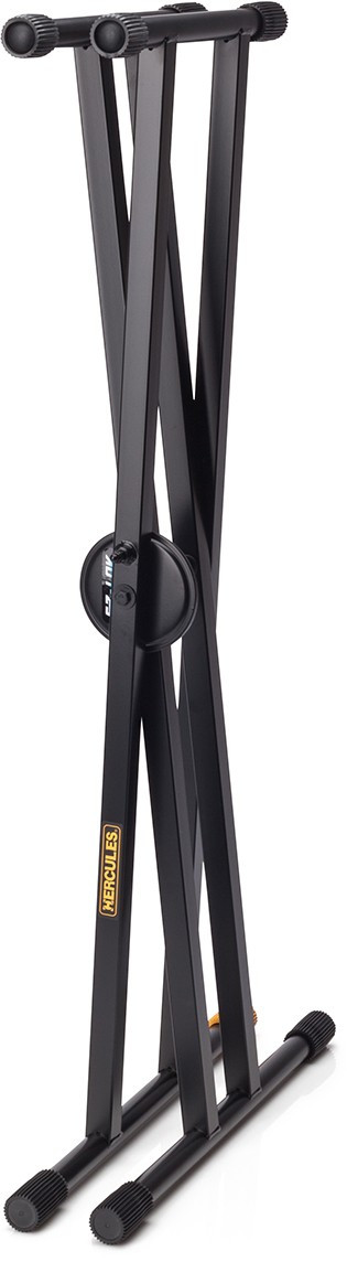The HERCULES Double X Keyboard Stand KS120B is the perfect choice for keyboard players who need a sturdy, adjustable stand that is easy to set up and take down. The EZ-LOK System automatically locks the stand in place, while the Adjustable Rubber Foot provides stability on uneven floors. Double Braces provide additional strength and stability. With a weight capacity of up to 120 kg (264 lbs), this stand can handle even the heaviest keyboards. Choose from 5 different height settings to find the perfect playing position. The Hercules Double X Keyboard Stand KS120B is built to last with heavy-duty steel construction.